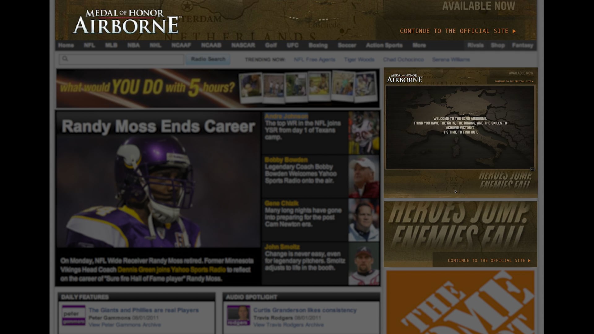 CAMPAIGN The highly acclaimed “Medal of Honor” franchise took to the skies, launching gamers from planes as paratroopers in the 82nd Airborne Division. With this installment, players would choose their assault from above, before launching their ground attack, and it was our mission to showcase this storyline, in order to generate hype around the game’s launch. What better way to build hype and show off gameplay, than to actually let gamers “play” the game before its release? With that, we created the first-of-their-kind “choose your own adventure” gameplay ads, and experiential landing page, immersing gamers in gameplay footage, while giving them over 30 different paths to navigate, with each outcome unique. SPECS Timeline: 12 weeks Deliverables: Experiential LP / Interactive Digital Ad Success Metrics: Create Game Buzz / Increase Site Traffic / Increase Ad & LP CTR RESULTS Millions of ad and site views >4 min avg time spent in ad >12 min avg LP visit >16% combined avg. CTR